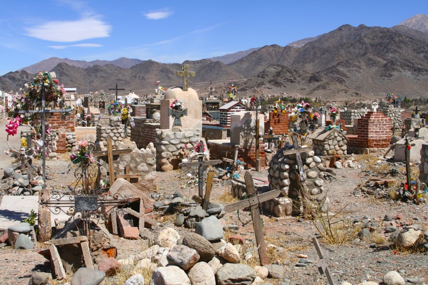 Once you’ve wandered around for a bit, had a bite to eat and checked out the couple of artisanal shops in town, there isn’t a great deal to do in Cachi. However, there is a picturesque and dramatically located cemetery not too far from the centre of town that is well worth visiting. The colourful graves, adorned with plastic flowers, offer a stark contrast to the surrounding browns.